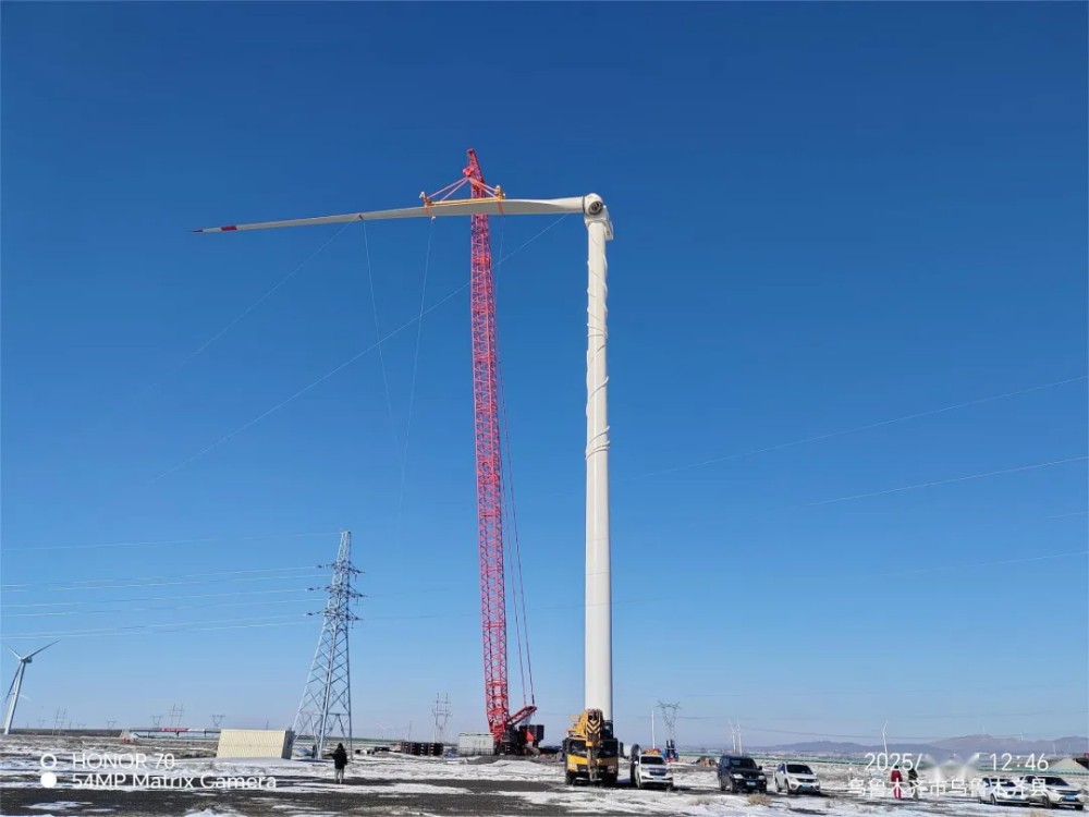 作為疆內(nèi)較早建成的風電場之一,達坂城風電一場承載著區(qū)域風電產(chǎn)業(yè)起步與發(fā)展的厚重記憶。歷經(jīng)多年運行,原有機組逐漸面臨設備老化、發(fā)電效率下滑等問題,為破解發(fā)展瓶頸,公司果斷啟動升級改造工程,即拆除低效舊機組,引進金風科技7.5兆瓦較大容量風電機組。該項目自啟動以來便面臨多重挑戰(zhàn),特別是進入冬季以來,達坂城區(qū)域風力常達5級以上,惡劣天氣不僅給施工人員帶來身體考驗,更對吊裝作業(yè)的安全性和精準度提出極高要求。加之冬季白晝時間短,有效作業(yè)窗口期大幅壓縮,進一步增加了施工難度。為確保項目推進,項目團隊提前研判區(qū)域氣候規(guī)律,制定針對性冬季施工方案,將科學組織與精細管理貫穿始終。從塔筒起吊、機艙就位到葉片精準對接,每一個環(huán)節(jié)都凝聚著建設者的智慧與堅守。同時,為確保巨大部件在風雪中平穩(wěn)吊運至預定位置,項目組全程落實風險管控措施,細化安全預案,對設備狀態(tài)、作業(yè)環(huán)境進行實時監(jiān)測,最終成功實現(xiàn)“零事故、零傷害”的安全生產(chǎn)目標。
