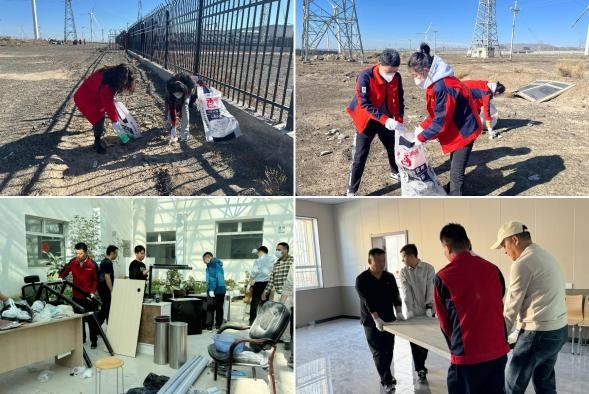 活動通知一經(jīng)發(fā)布,公司各黨支部積極響應(yīng),全體黨員對活動展現(xiàn)出極高的熱情。25日下午,公司黨員干部精神飽滿地集合出發(fā),前往達(dá)坂城風(fēng)電場。到達(dá)目的地后,所有人分成兩組,分別對場站內(nèi)部和外部進(jìn)行清潔。大家分工明確、干勁十足,對場站內(nèi)部的桌椅、設(shè)備進(jìn)行規(guī)整、清潔,對場站周邊的垃圾、石塊等進(jìn)行全面掃除,不放過任何一個清潔死角。十月的戈壁寒風(fēng)呼呼作響,但寒冷的天氣澆不滅火熱的心,大家熱火朝天地打掃著場區(qū)的衛(wèi)生,用一次次彎腰踐行著“生態(tài)優(yōu)先、綠色發(fā)展”的理念,使場區(qū)環(huán)境煥然一新,忙碌的身影形成了一道靚麗的風(fēng)景線。活動的最后,大家合影留念,記錄下了這一難忘的時刻。
