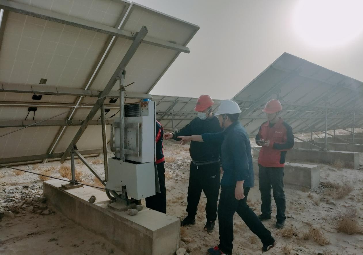 (通訊員 萬高峰/攝影 肖廣民)為進一步加強場站安全生產(chǎn)管理,確保和田區(qū)域光伏電站安全穩(wěn)定運行,近日,風能公司黨委委員、副總經(jīng)理滿強及安全總監(jiān)朱偉剛帶領安全環(huán)保部安全檢查小組深入于田光伏電站,開展了細致全面的安全檢查工作。電站相關負責人陪檢。
